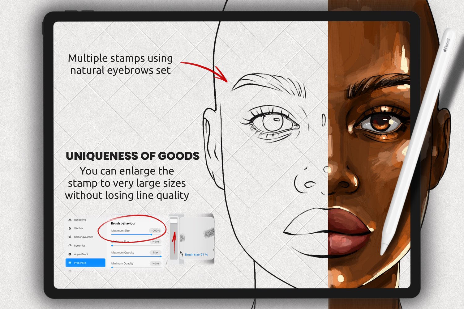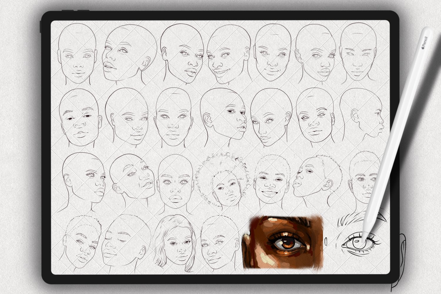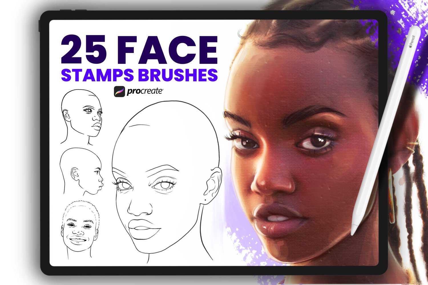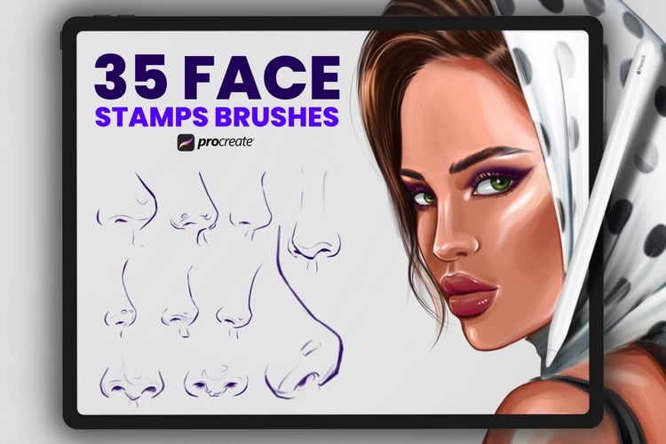 In this set, you will get Asian Female Faces Stamp Brushes to Procreate for creative projects. This set will help in creating realistic faces in your illustration.Desription• Set of 25 various stamp brushes for Procreate App