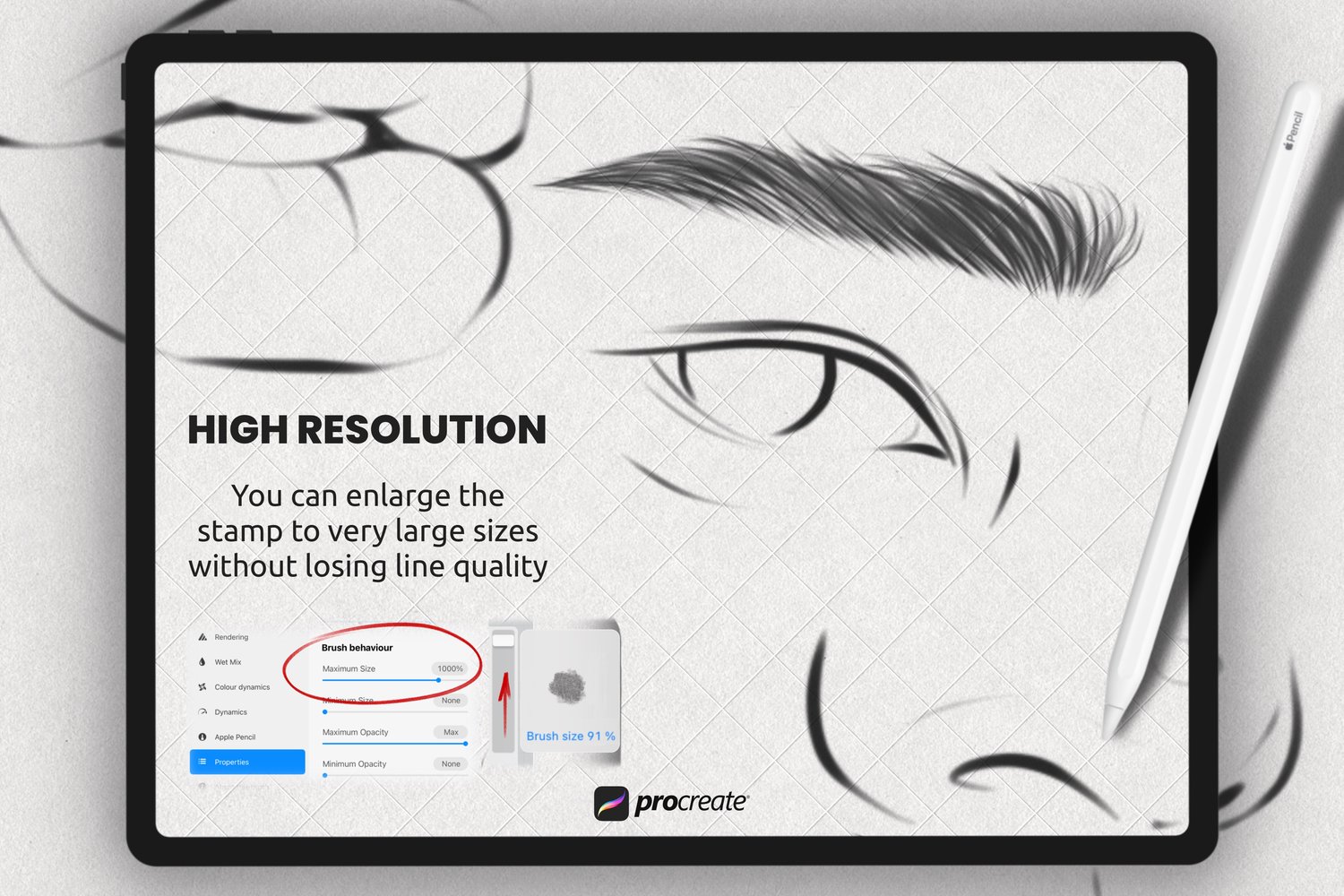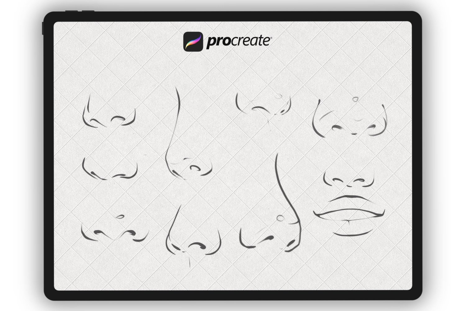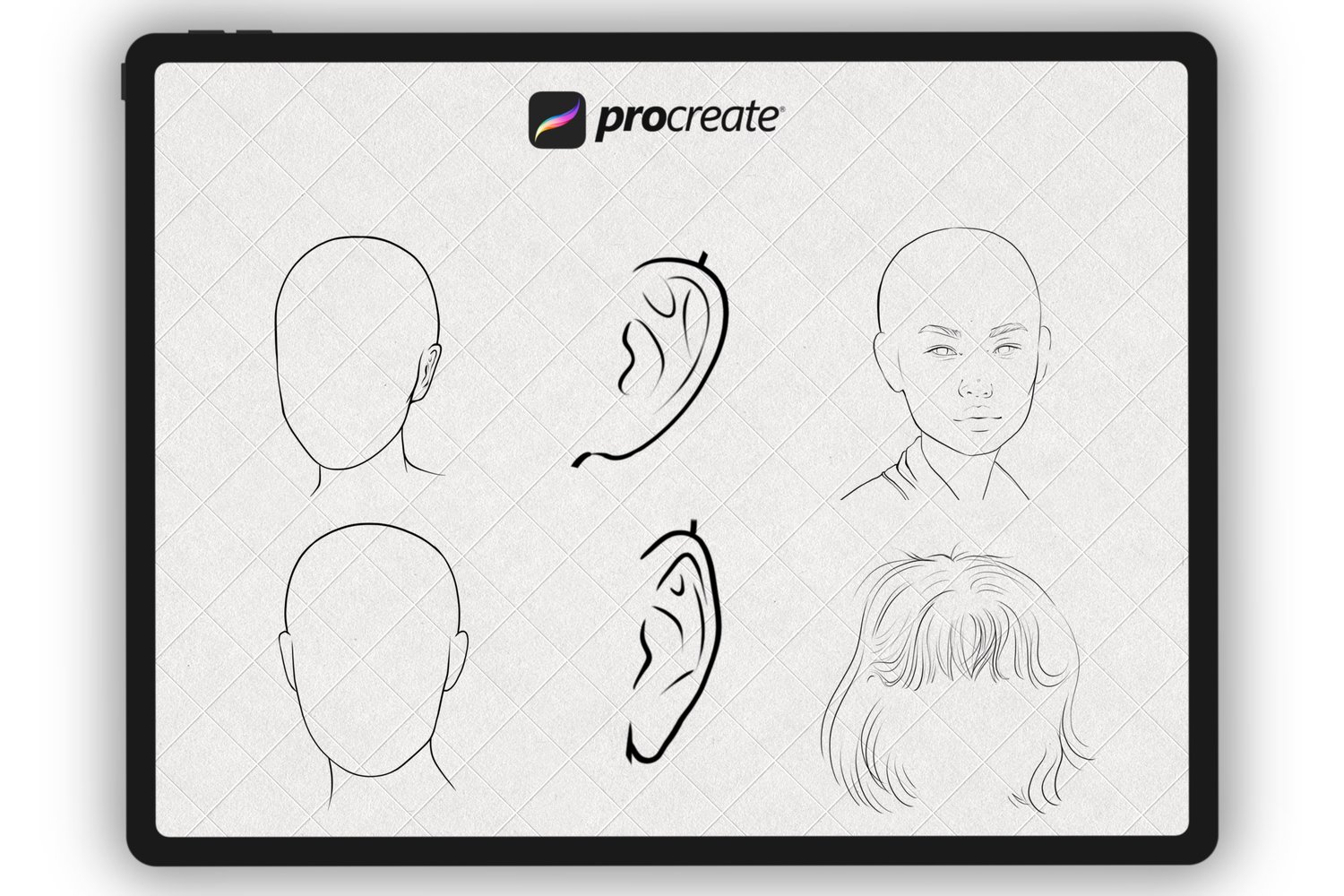 - Set of 35 various face stamp brushes for Procreate App. Eyes, Brows, Noses, Ears, Lips, 1 Hairs, 1 Palette for Skin,1 Portrait Stamps.