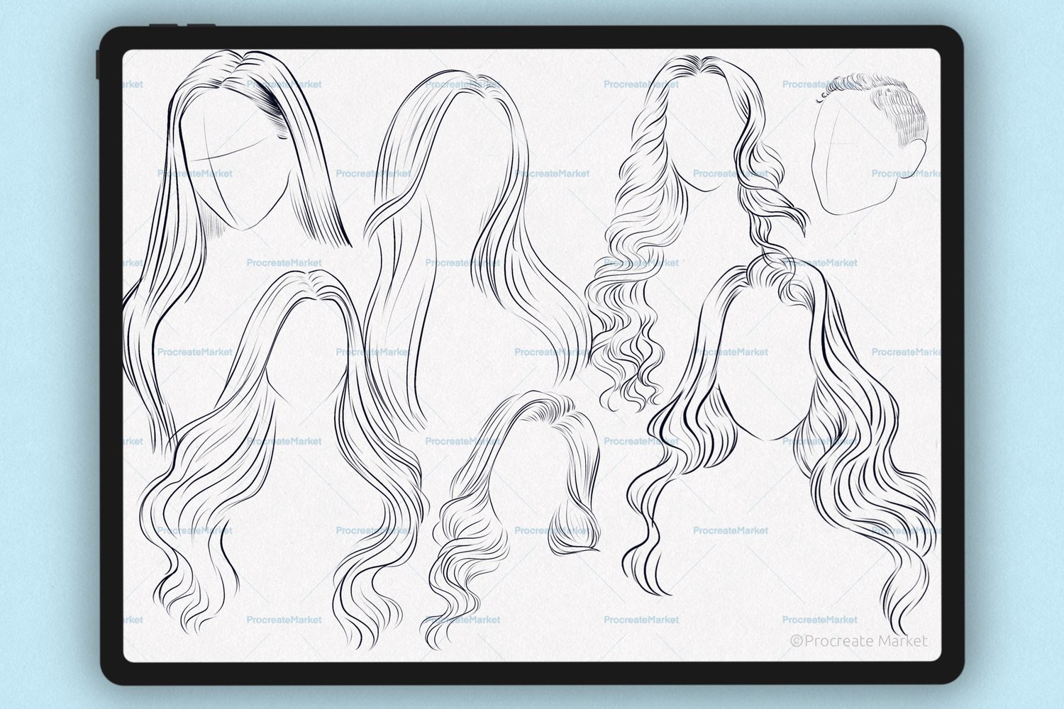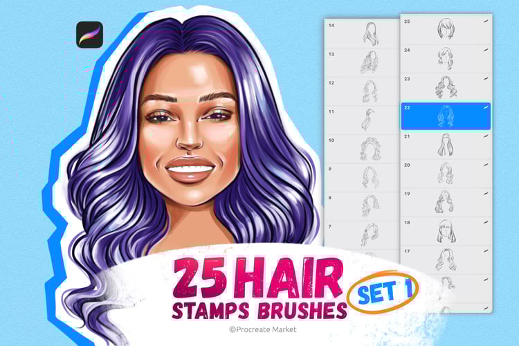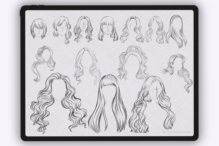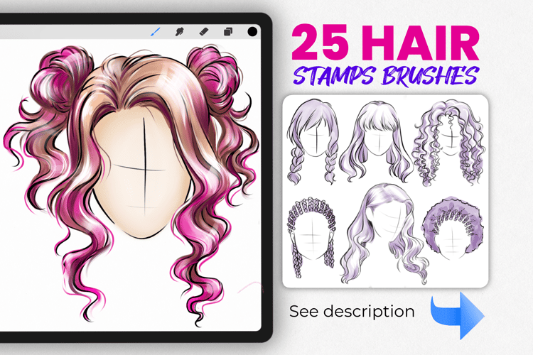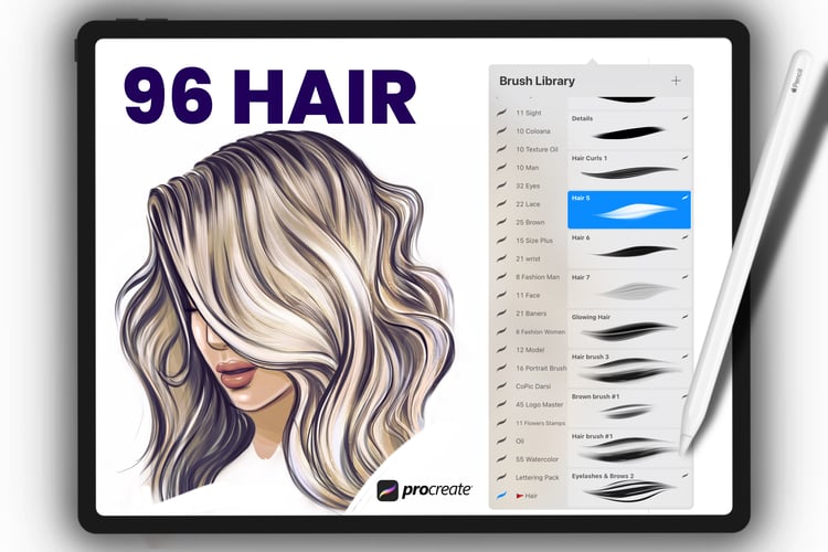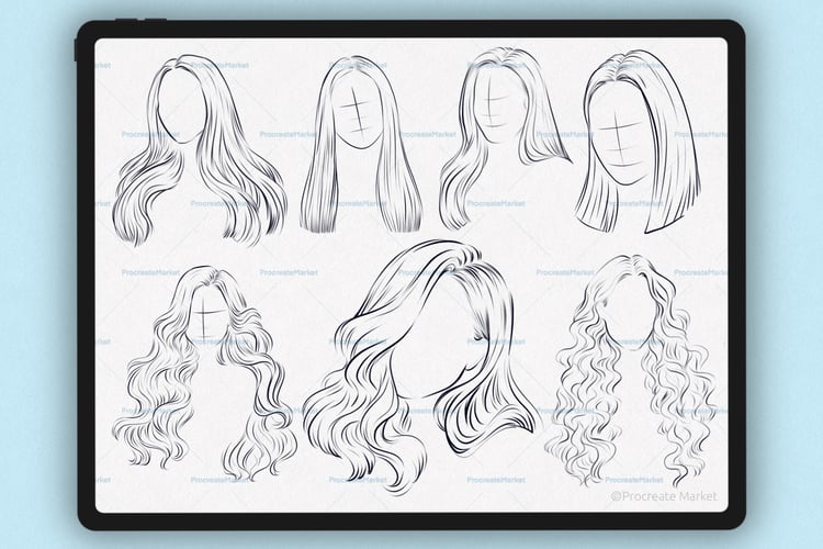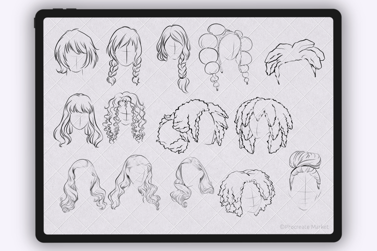 Procreate hair brushes | Hairstyle Stamp Brushes | Procreate Hair | Procreate portrait brushes