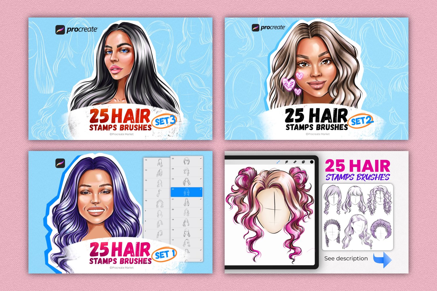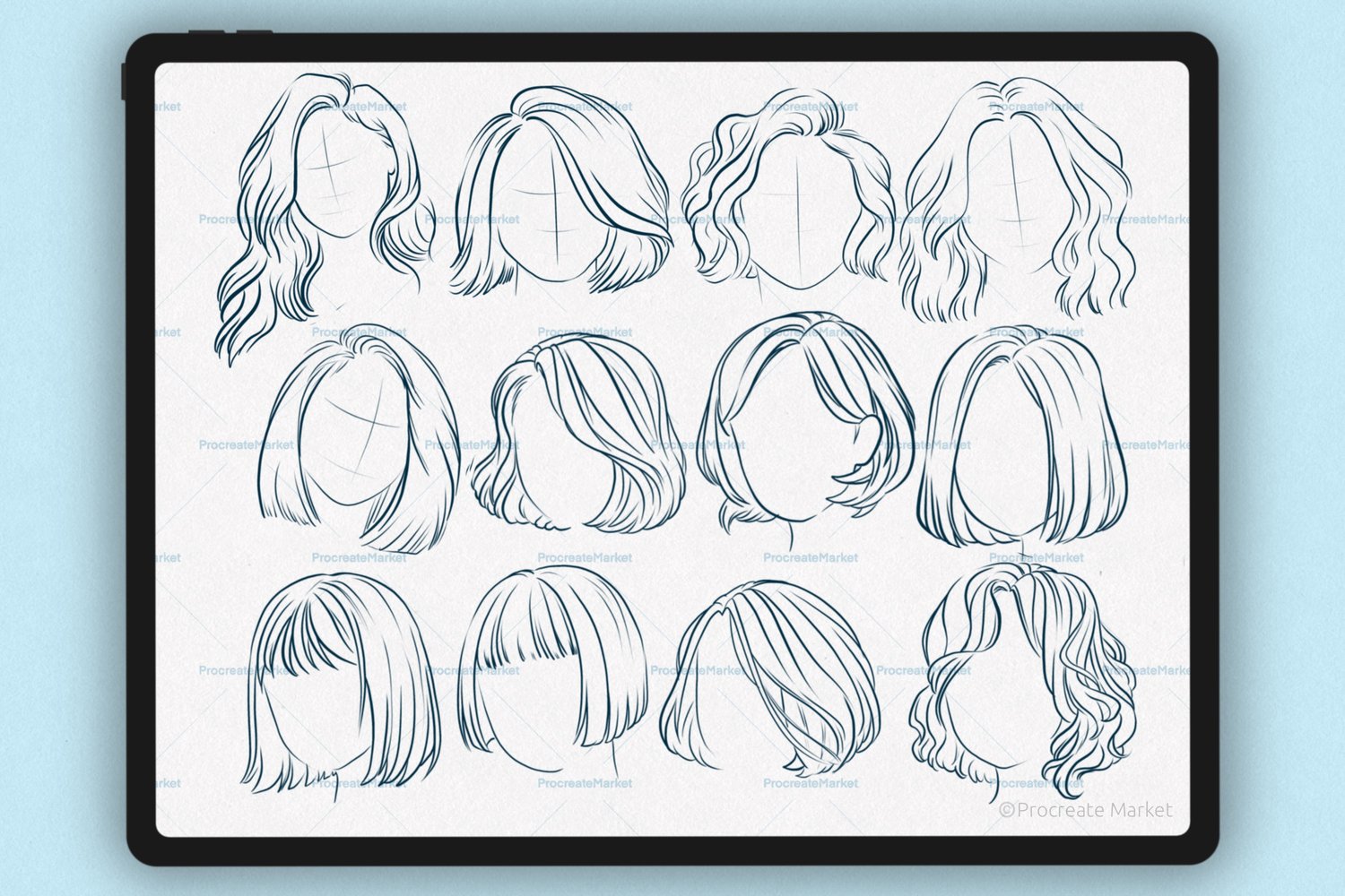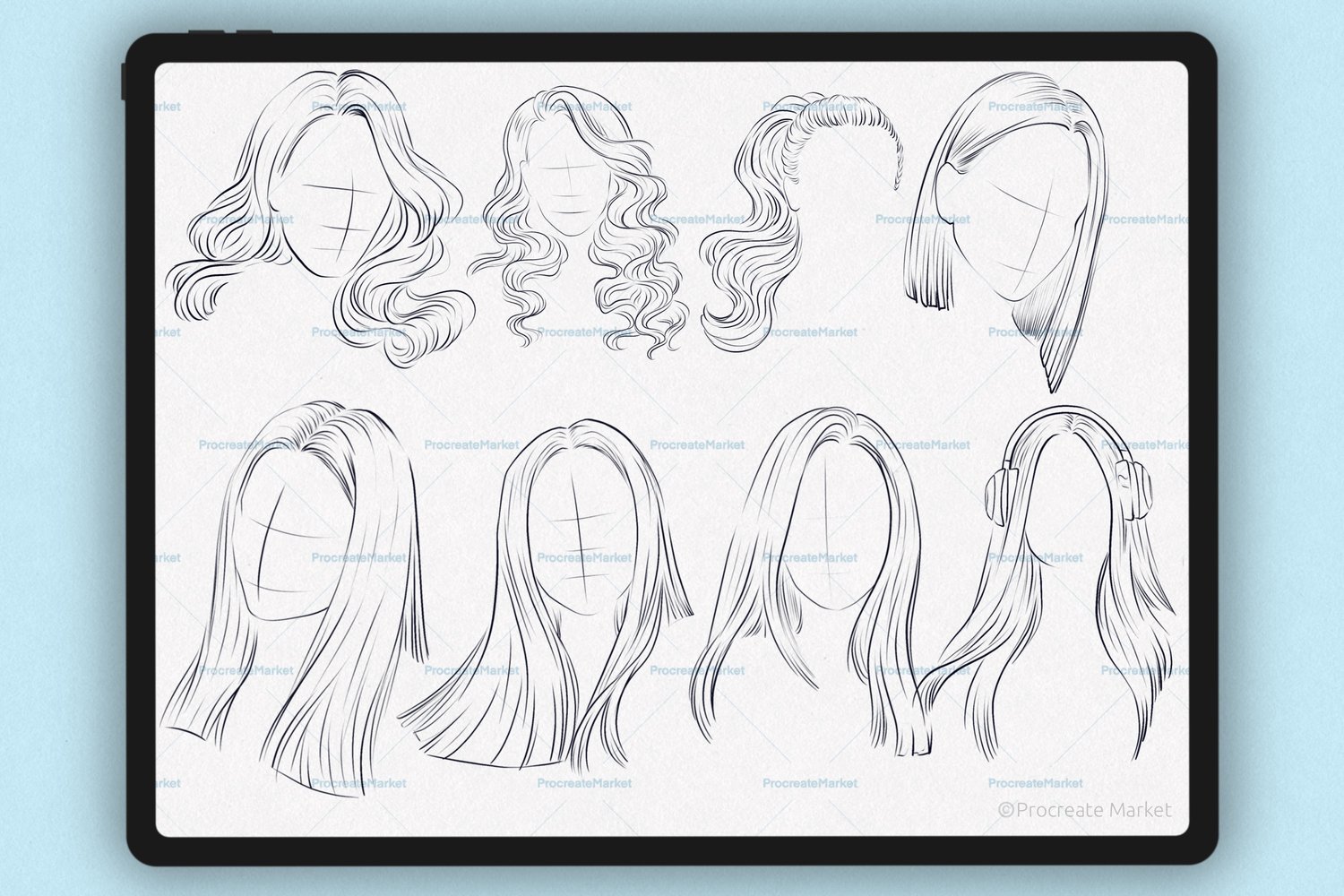 Procreate hair brushes | Hairstyle Stamp Brushes | Procreate Hair | Procreate portrait brushes