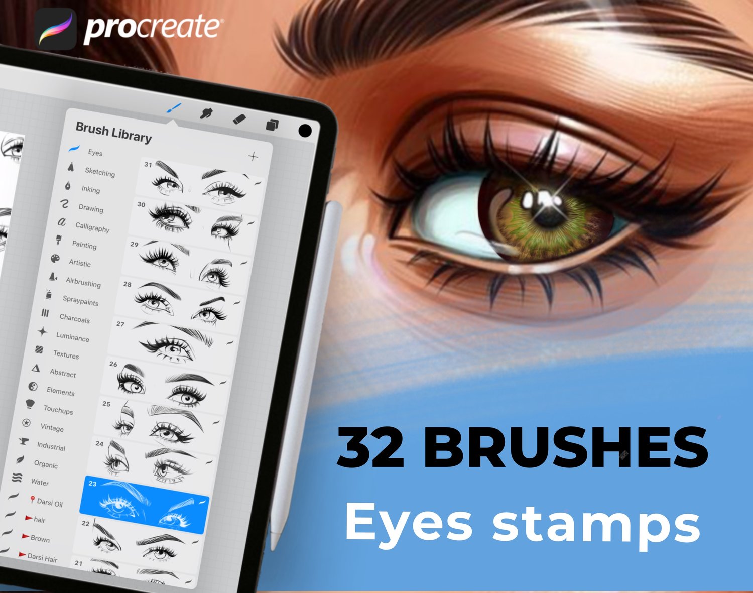 Eyes Stamp Brushes for Procreate - Portrait Brushes - 32 Brush Set