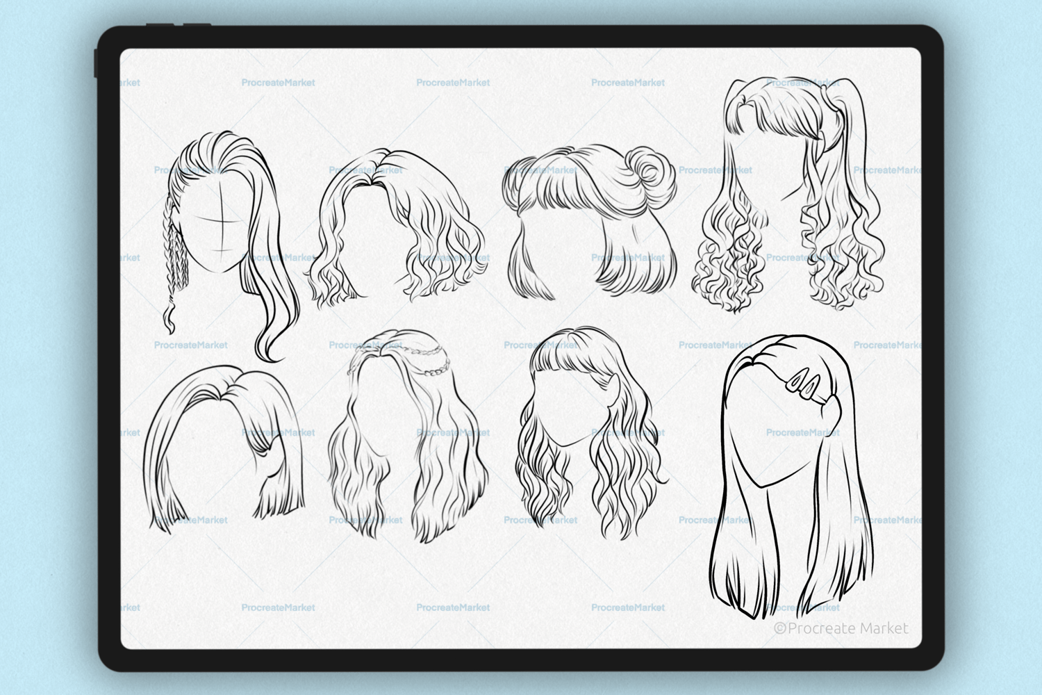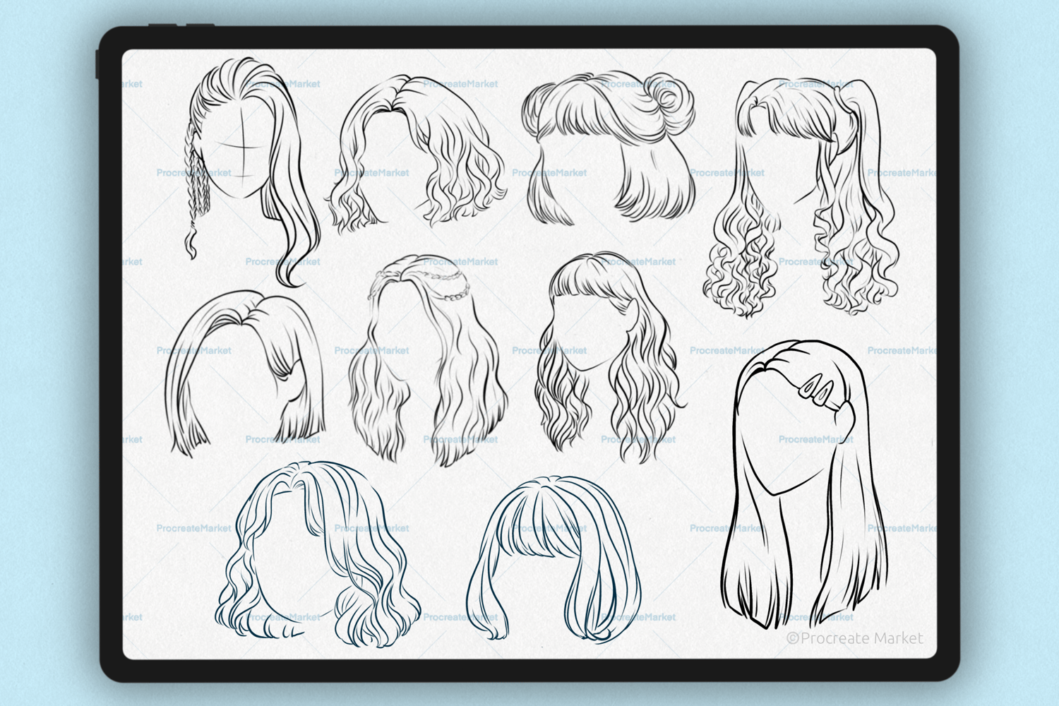 - Set of 25 various hairstyle, women haircuts stamp brushes for Procreate App